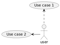 @startuml (Use case 1) <.. :user: (Use case 2) <- :user: @enduml