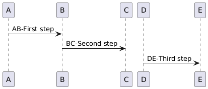 @startuml /' case 1 '/ A -> B : AB-First step B -> C : BC-Second step /' case 2 '/ D -> E : DE-Third step @enduml