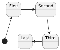 @startuml [*] -up-> First First -right-> Second Second --> Third Third -left-> Last @enduml