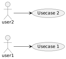 @startuml left to right direction user1 --> (Usecase 1) user2 --> (Usecase 2) @enduml