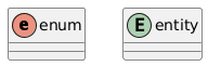@startuml hide stereotype skinparam spotChar<<enum>> e enum enum <<enum>> entity entity @enduml