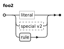 @startebnf foo2 = "literal" | ?special v2? | rule; @endebnf