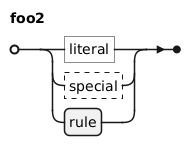 @startebnf foo2 = "literal" | ?special? | rule; @endebnf