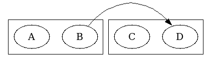 @startdot digraph unix { subgraph cluster_x { "A"; "B"; } subgraph cluster_y { "C"; "D"; } B -> D [minlen=0] } @enddot