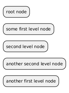 @startmindmap * root node * some first level node * second level node * another second level node * another first level node @endmindmap