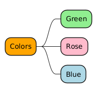 @startmindmap *[#Orange] Colors **[#lightgreen] Green **[#FFBBCC] Rose **[#lightblue] Blue @endmindmap