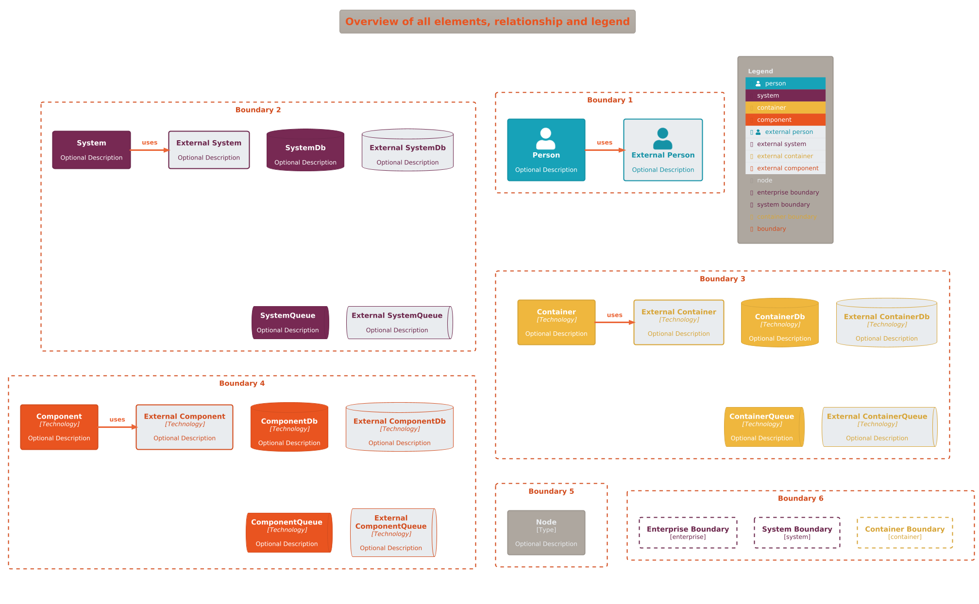 @startuml !theme C4_united from https://raw.githubusercontent.com/plantuml-stdlib/C4-PlantUML/master/themes !include https://raw.githubusercontent.com/plantuml-stdlib/C4-PlantUML/master/percy/TestAllElementsWithLegend.puml @enduml