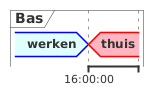 @startuml concise "Bas" as bas bas is werken #LightCyan;line:Blue @bas 16:00:00 is thuis #lightpink;line:red @enduml