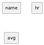 @startuml !$myjson = { "name": "Mark McGwire", "hr": 65, "avg": 0.278 } !foreach $key in %get_json_keys($myjson) rectangle $key !endfor @enduml