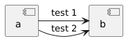 @startuml component a component b a->b: test 1 a->b: test 2 @enduml
