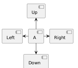 @startuml !pragma layout smetana component A component Up component Down component Left component Right A -u-> Up A -d-> Down A -l-> Left A -r-> Right @enduml