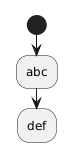 @startuml !$list = %splitstr("abc~def", "~") start !foreach $item in $list :$item; !endfor @enduml