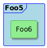 @startuml <style> frame { LineColor Blue BackgroundColor LightBlue Shadowing 0 } rectangle { LineColor Green Backgroundcolor LightGreen Shadowing 1 } </style> frame Foo5 { rectangle Foo6 } @enduml
