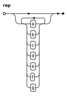 @startebnf !pragma theo rep = {a|b|c|d|e|f|g}; @endebnf